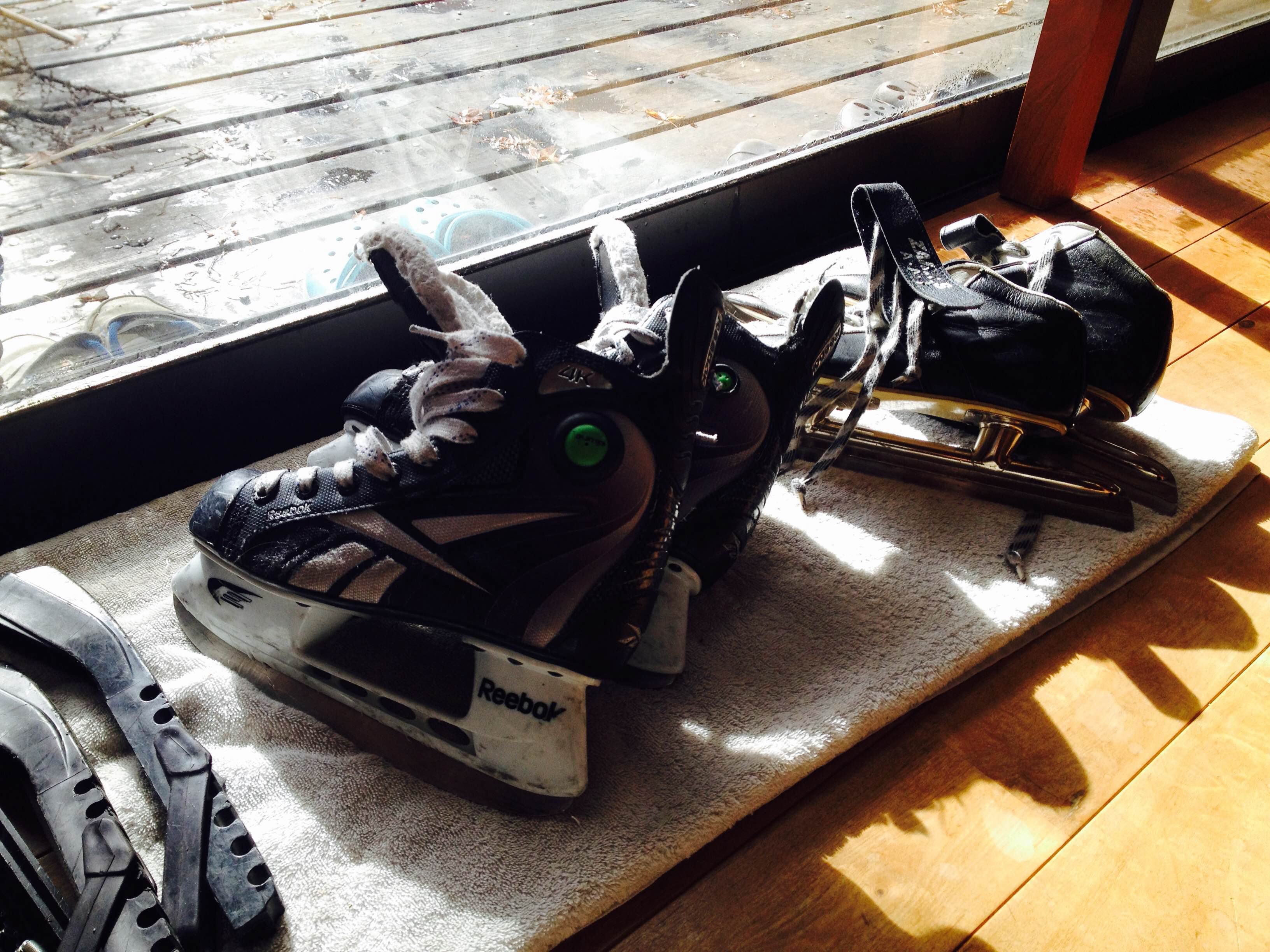 左側がアイスホッケーの靴で、右側がスピードスケートの靴です。刃の厚さが全く違います。こんなことは、軽井沢に移住していなければ、知り得なかったことで、軽井沢での恵まれた環境のおかげで、ウィンタースポーツを見る目が変わったなぁ、とつくづく思います。