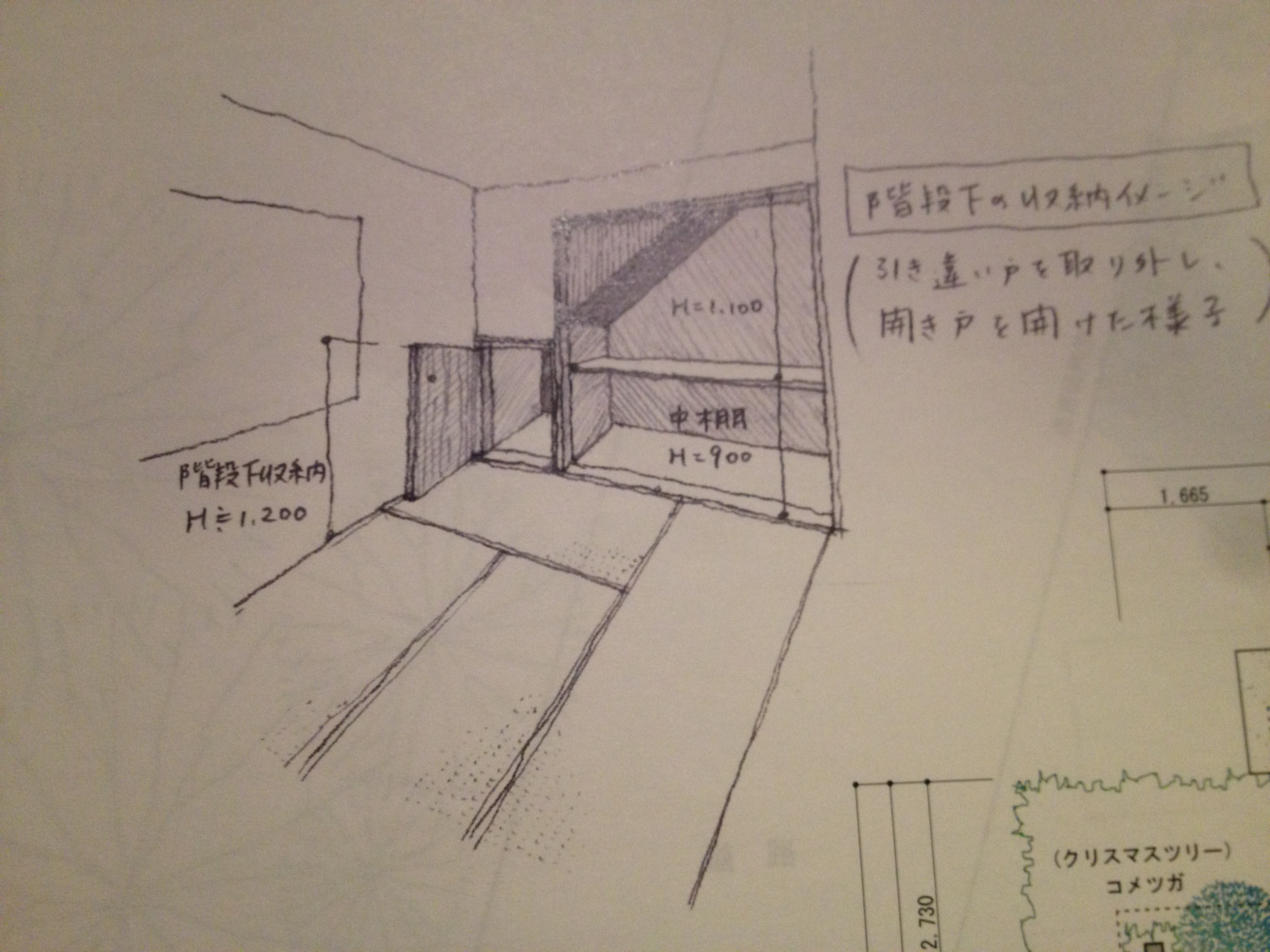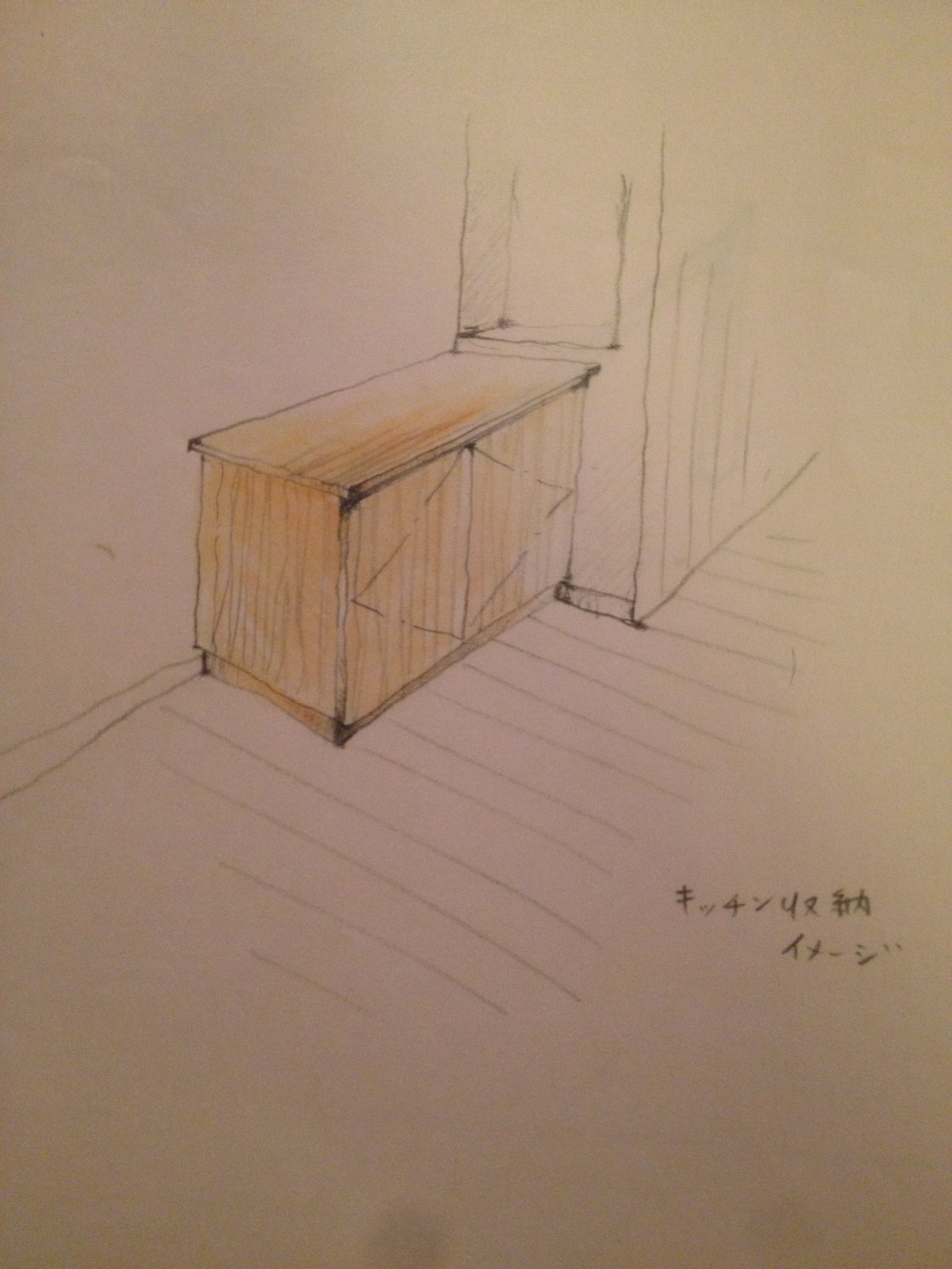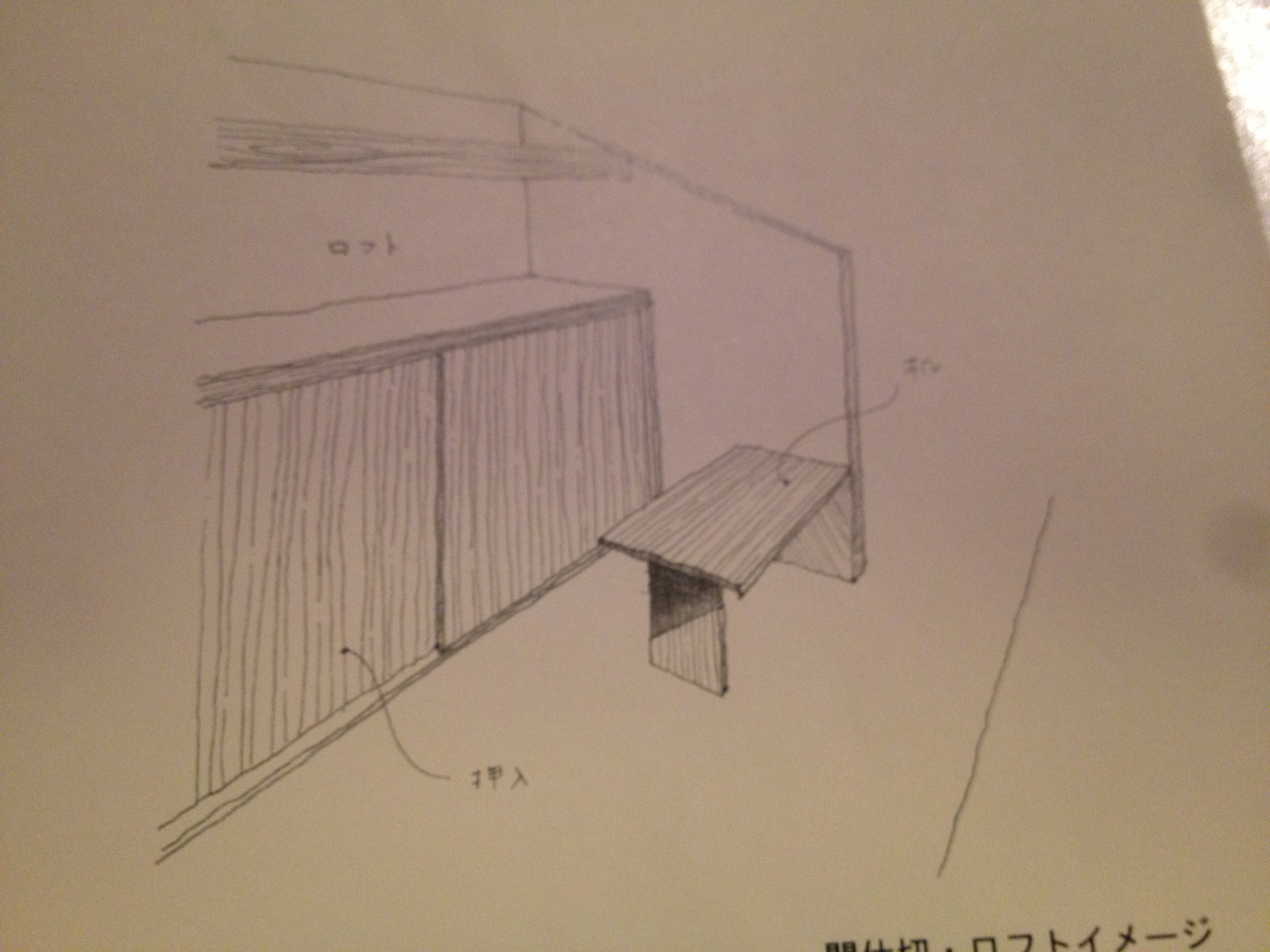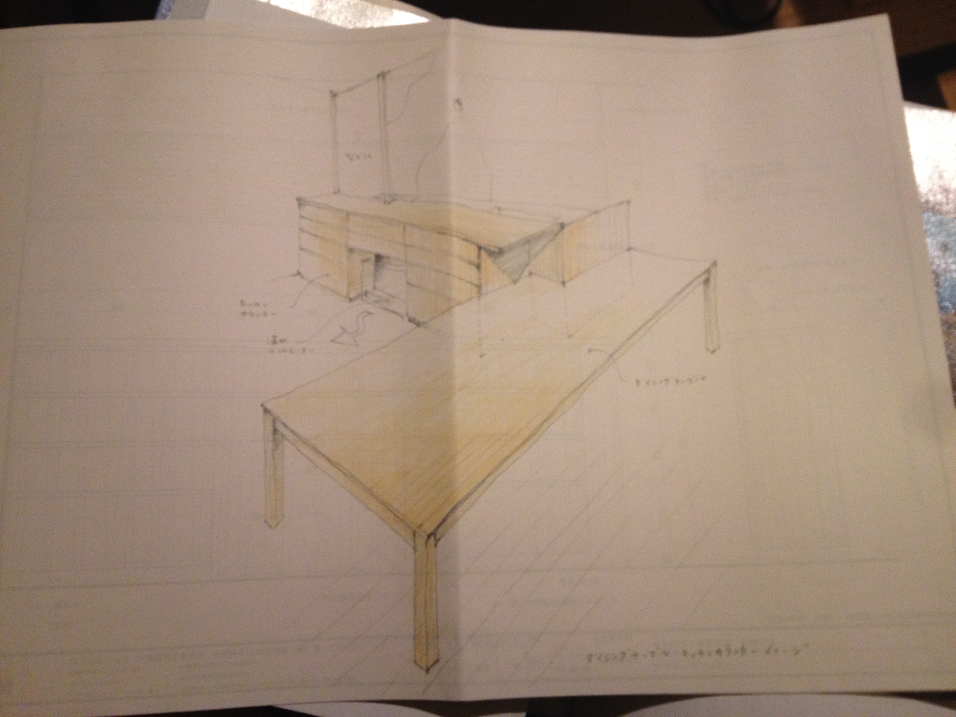 で、今日の家作りの話。建築事務所に、「是非、うちを建ててください!」とお伝えしてから、確定見積もりを提示していただくまでに、基本設計を完了させ、仕様、設備機器、仕上げの確認をする必要があります。実際に、最初のプレゼンでいただく設計図面だけでも、相当その出来栄えに感動するのですが、住むことをイメージしながら、図面を見ると、細かい部分で、どのような設計になっているのか、図面だけでは分かりづらいところがあるんです。そこをカバーしてくださったのが、橋爪さんの「絵」でした。以下、結局実現しなかったものも含めて、アップいたします。