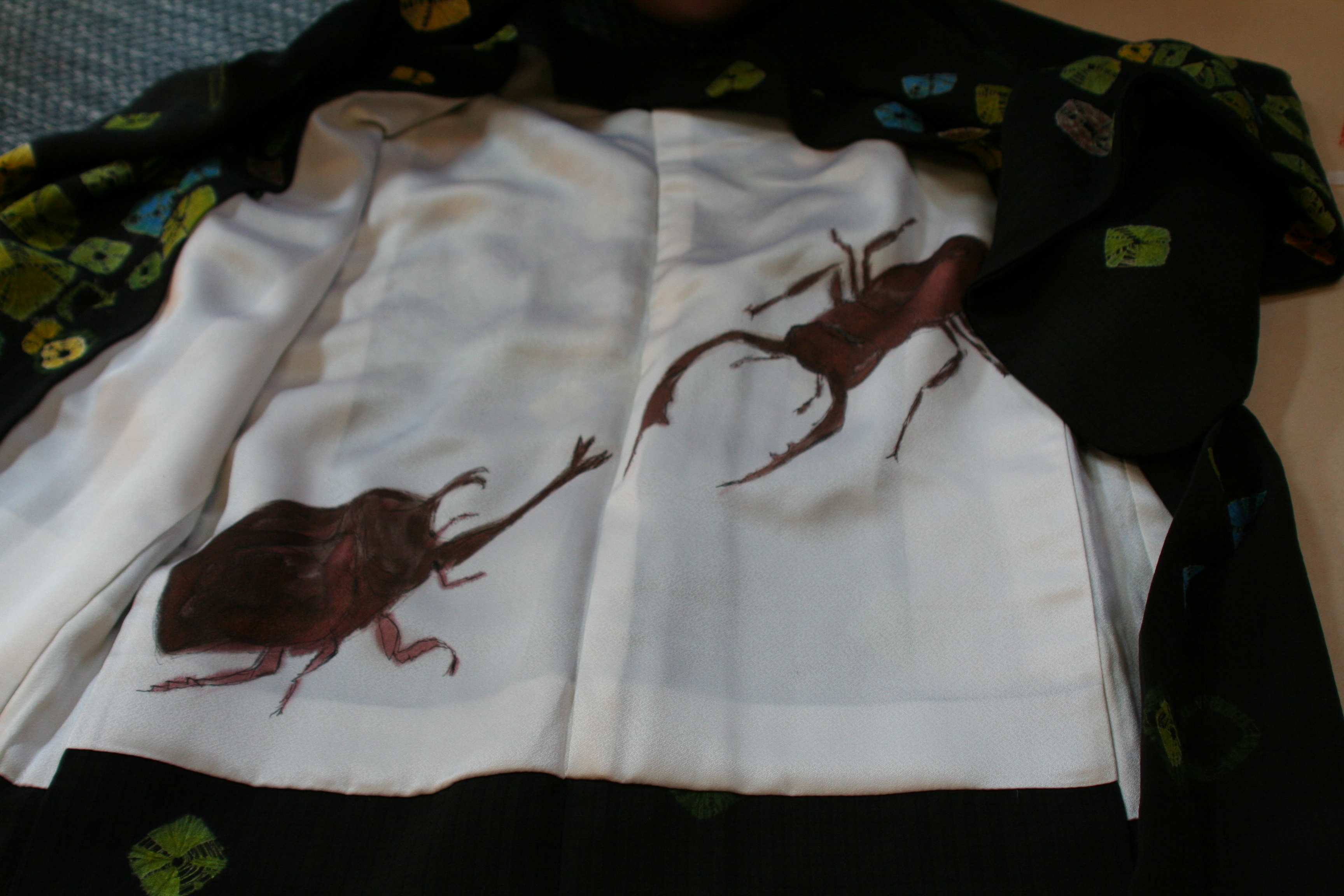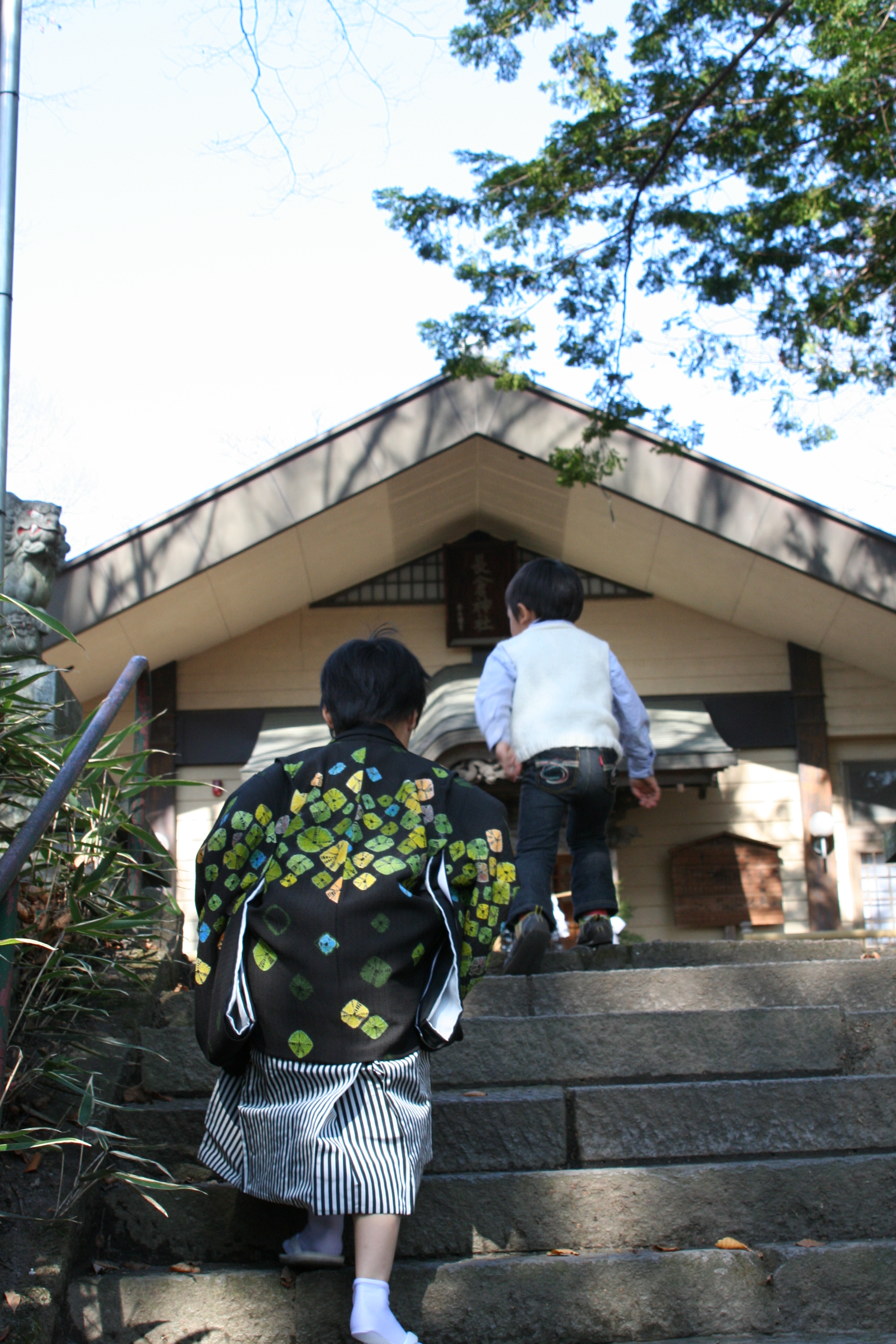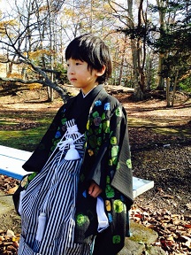 こちらは、長倉神社の公園で撮影したものですが、この三男の羽織は、「花相容」に関わる方がたまたまご近所で、長男の七五三の時に作っていただいたものです。中には、カブトムシの絵が描かれています。